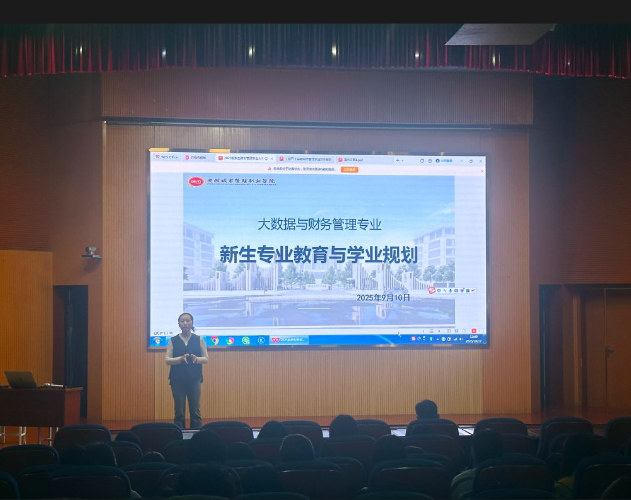 2025年10月17日下午,2025级大数据与财务管理专业新生入学教育在经开校区顺利开展。数智财经学院副院长毛德成、大数据与财务管理教研室负责人赵倩程、校企合作单位正保远程教育安徽区域负责人余智洋参加了此次新生入学教育,会议由赵倩程老师主持,全体25级大数据与财务管理专业大一新生参加了此次入学教育活动。