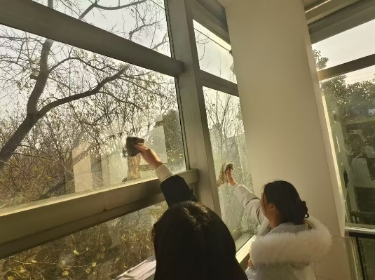 学习会后,各团支部迅速组建志愿服务队走进周边社区开展实践。并且到社区户外健身区域,对健身器材进行清洁擦拭、检查稳固性,同时清理周边落叶与杂物,让社区的健身场地更整洁、更安全。参与实践的同学表示,俯身劳作的过程让自己更真切地体会到基层服务的细节与温度,而社区居民投来的赞许目光,也让大家更坚定了服务基层的决心。