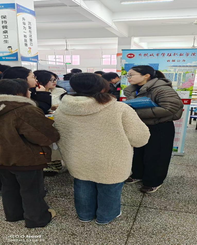 宣传期间,三位教师以高度负责的态度,通过设立咨询台、发放宣传资料、面对面答疑、专场宣讲等形式,向广大考生及家长详细介绍学院发展历程、特色专业、实训条件、升学途径、就业前景及 2026 年分类招生政策、报考流程、志愿填报技巧等核心内容。针对考生关心的专业选择、技能培养、奖助政策等问题,老师们耐心细致解答,用专业解读消除报考疑虑,用真诚服务传递学院温度。